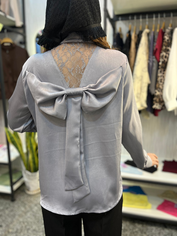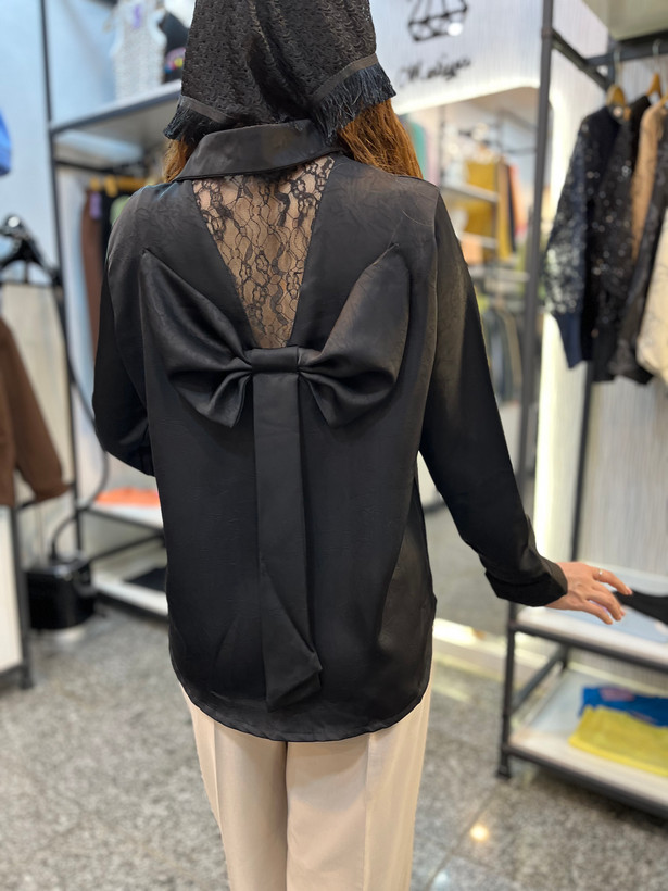 شومیز زنانه مدل پاپیون لخت و ریزشی کد 077